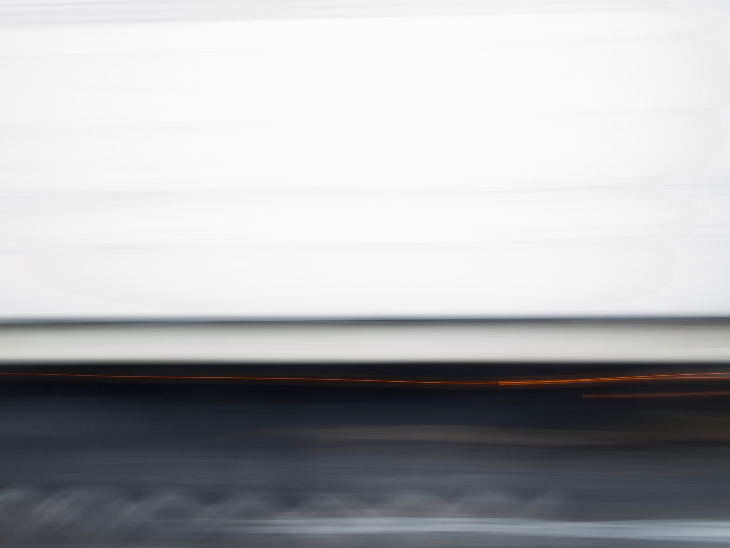 Ricus Aschemann hat seine beeindruckenden Aufnahmen aus einem fahrenden Auto heraus gemacht. Was er dabei fotografiert hat sind Lastwagen, die auf der Autobahn unterwegs waren, worauf auch die einzelnen Titel seiner Bilder verweisen. Mal fahren sie langsamer, mal schneller als das Auto, aus dem heraus der Künstler fotografiert. Immer aber verwendet dieser bei seinen Aufnahmen lange Belichtungszeiten, bei denen sich bewegte Objekte unscharf abbilden. Da er selbst auch in Bewegung ist, potenziert sich diese Unschärfe noch und ergreift auch die Straße unter ihm und den Himmel über ihm. Alle Gegenständlichkeit löst sich auf in diesen Bildern in immer neue Farbräume, in die man zurückkehrt wie in die Geborgenheit eines vorgeburtlichen Seins.